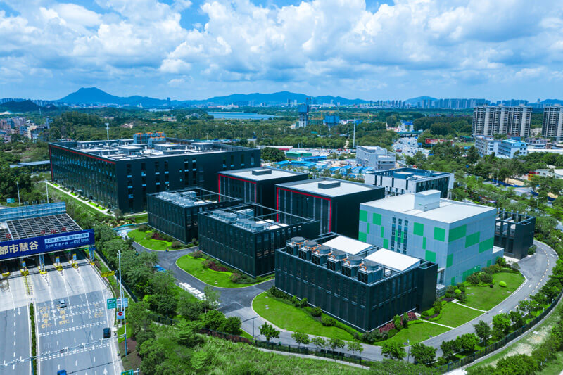 华为东莞云数据中心位于东莞松山湖东侧,是根据华为云全国“前店后厂”战略建设的华南区基地。其中,T1项目于2019年投入使用,因为采用多项先进节能技术,2021年运行PUE 1.28,与设计PUE相符,达到 “国家一体化大数据中心”政策要求PUE 1.30目标。